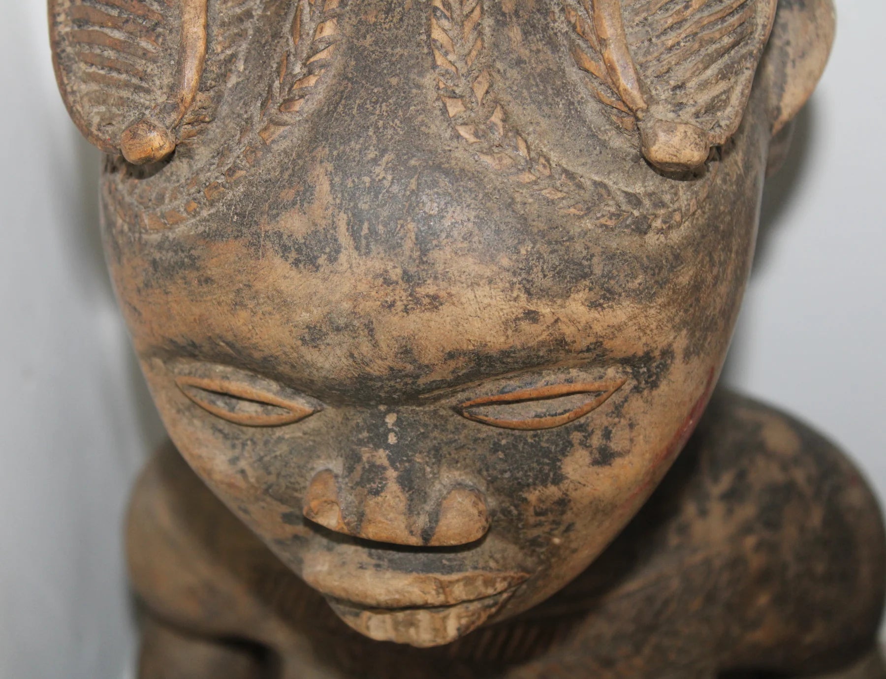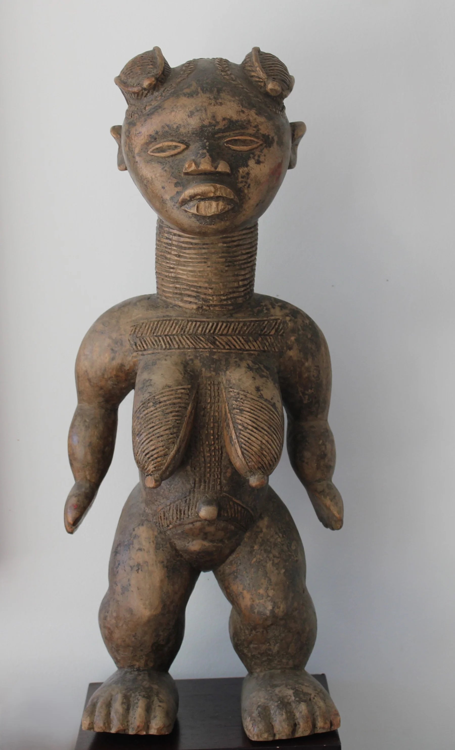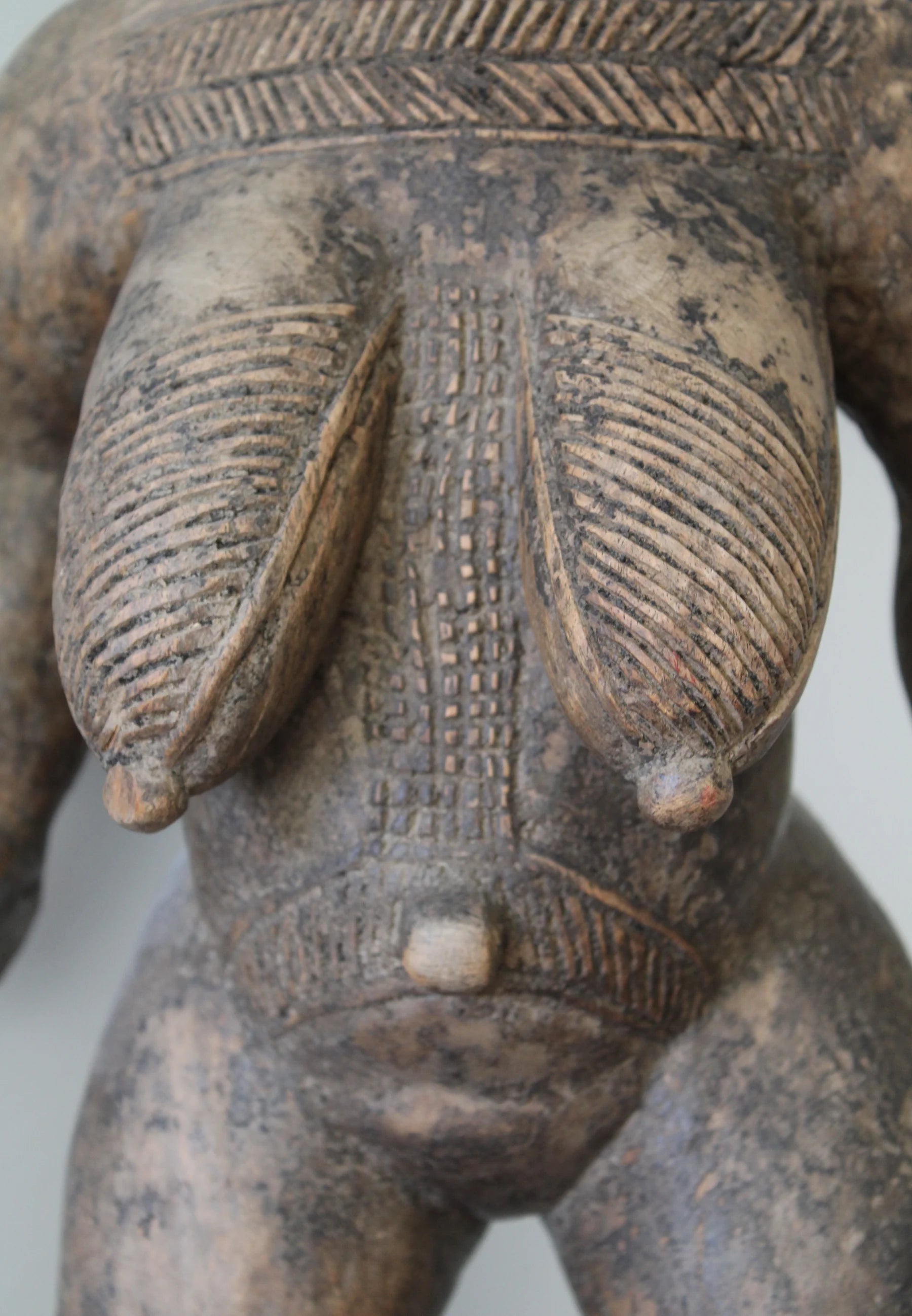 This figure possesses an exceptional patina, dark and mottled, which gives it a profound and authentic appearance, highlighting all the features; the face, the hairstyle and the scarifications are elevated to a higher level.