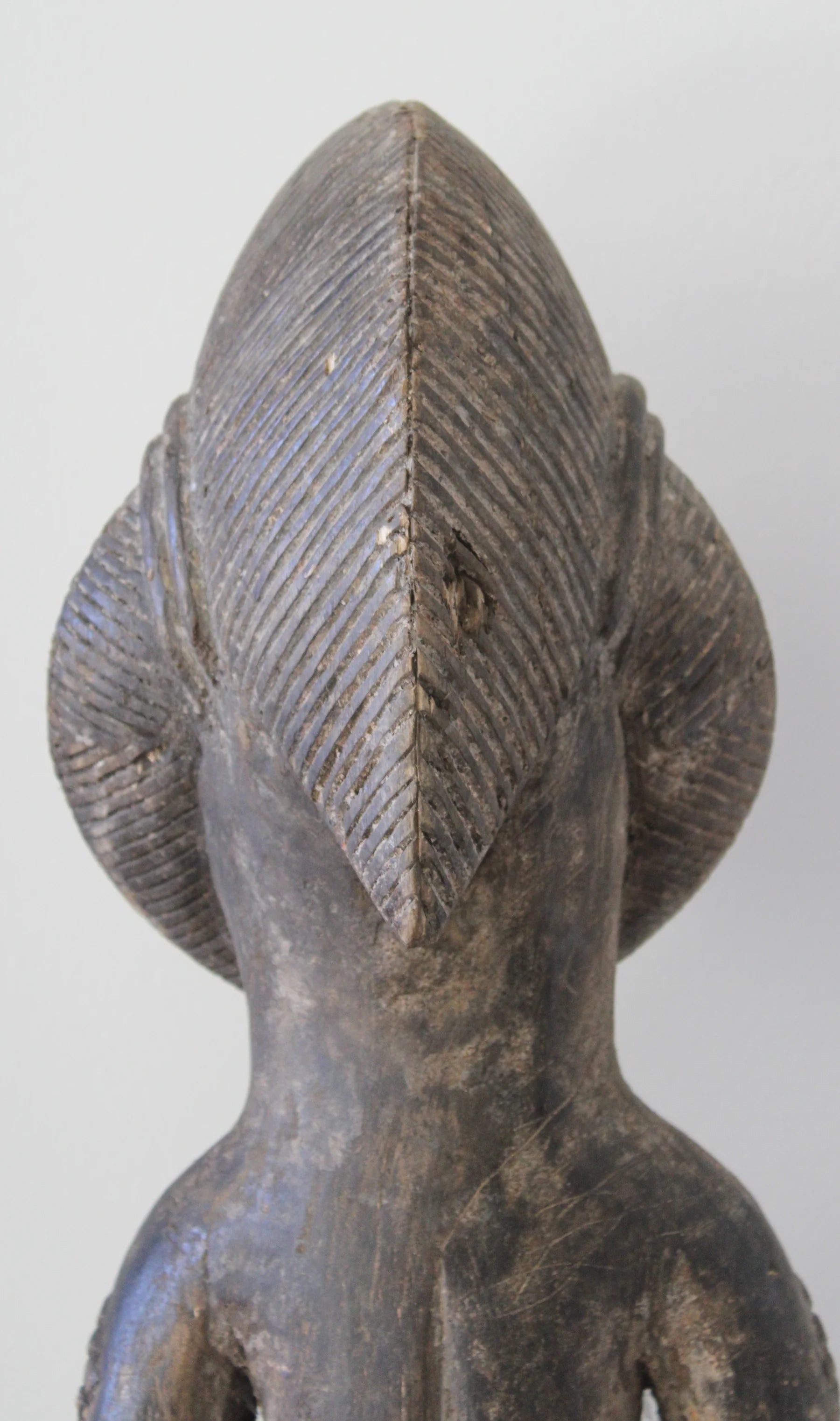 Esta escultura Punu representa a un ancestro femenino asociado al universo de los espíritus protectores y el bienestar comunitario.