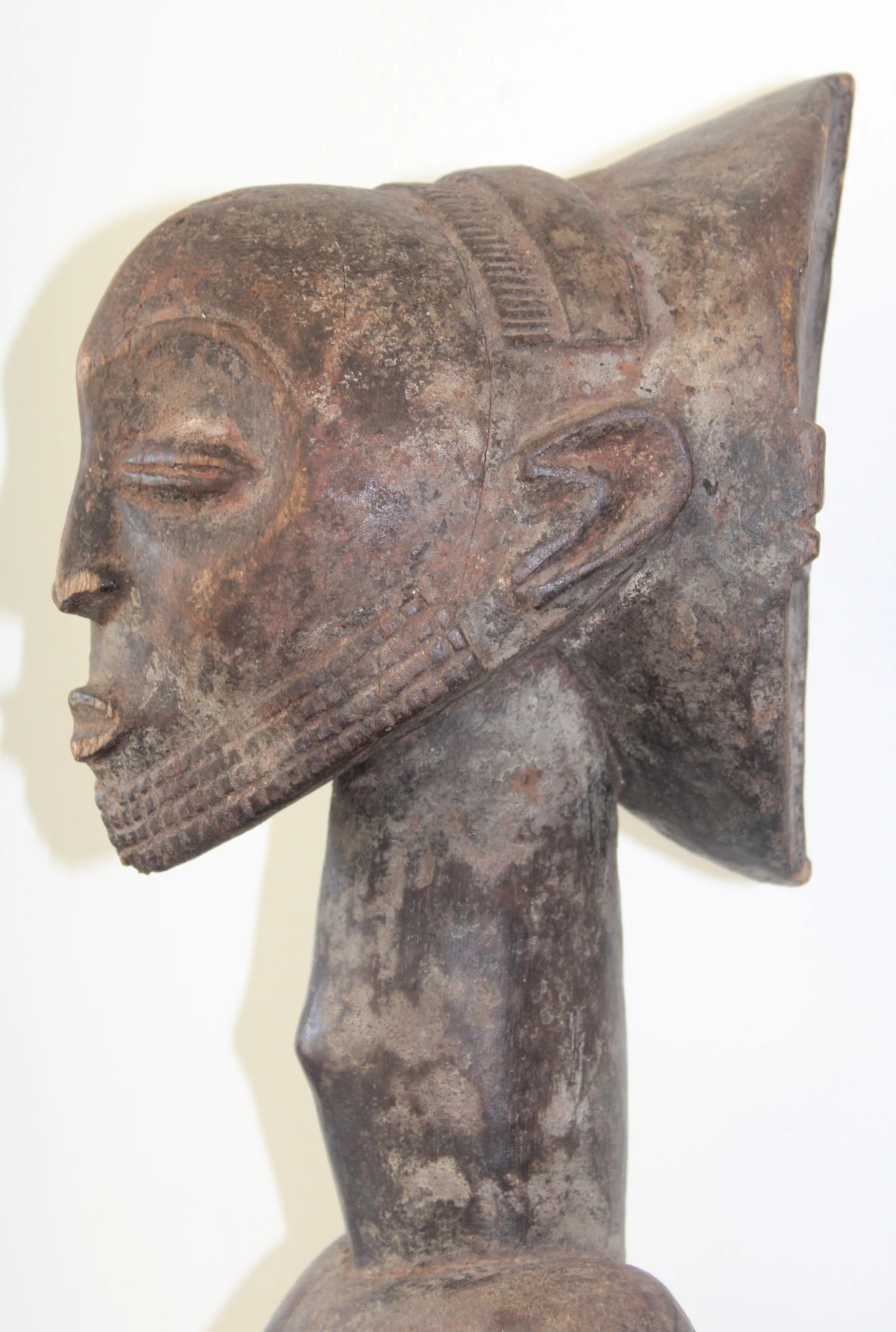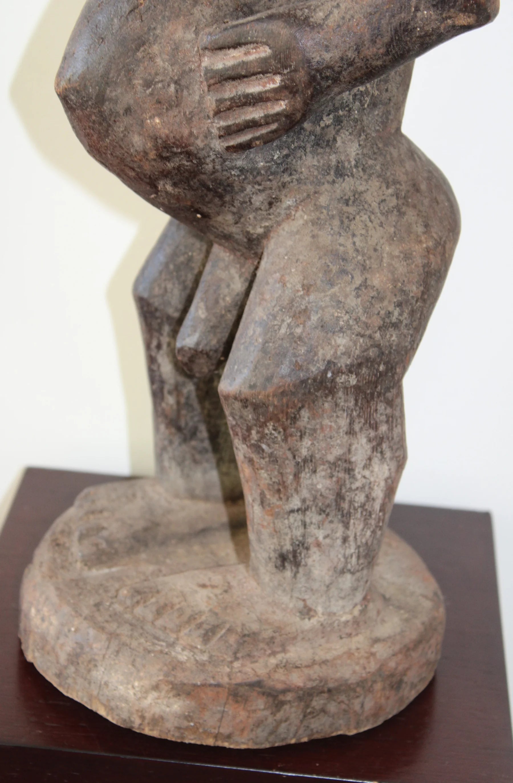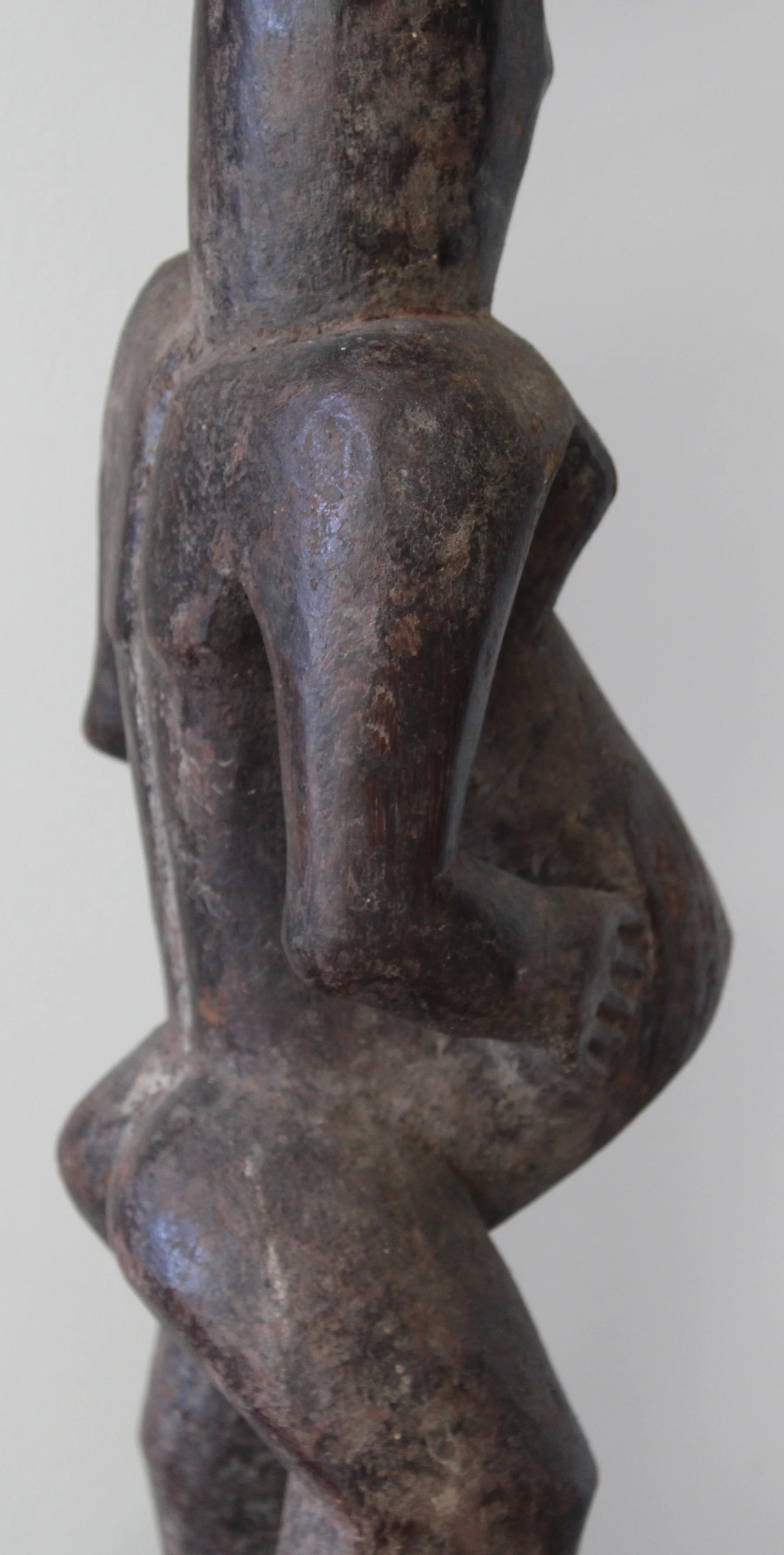 Impresionante estatua Singiti de la etnia Hemba, tallada en madera oscura y de gran delicadeza naturalista.