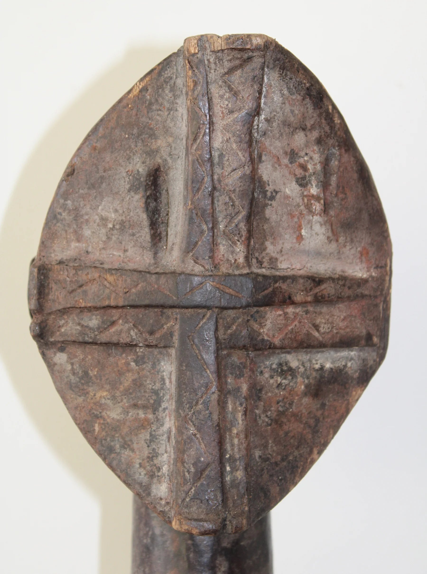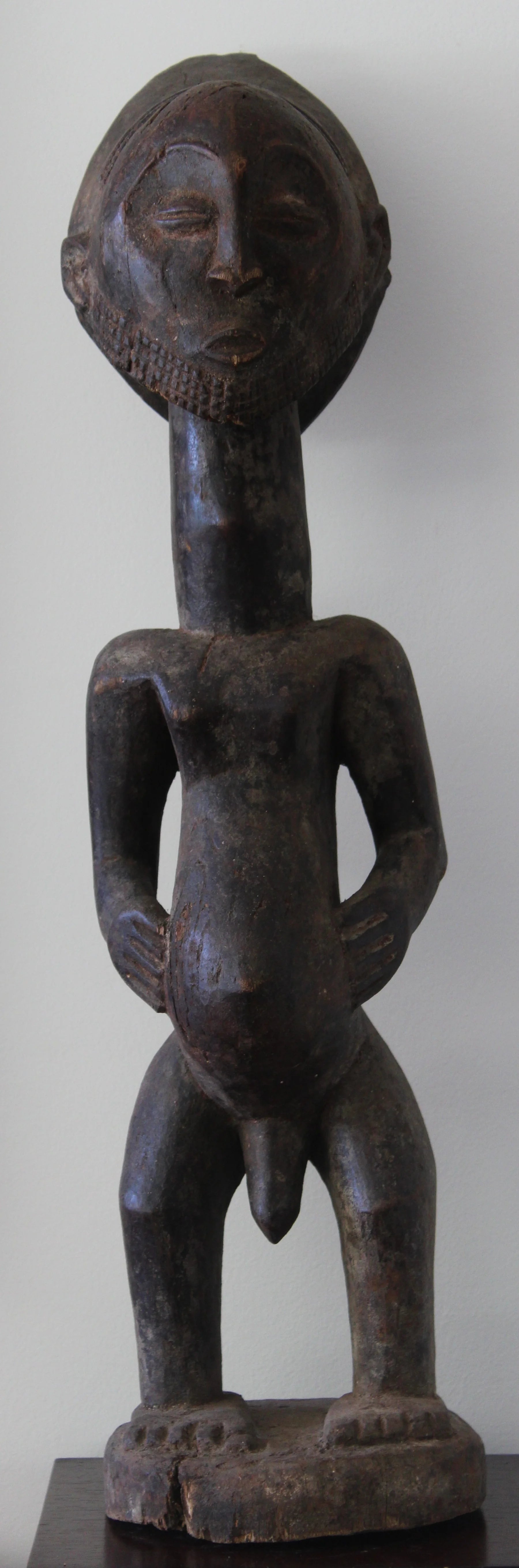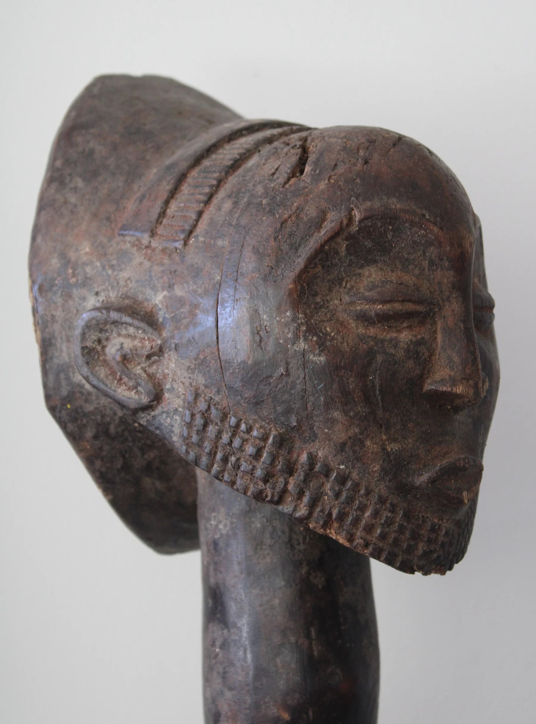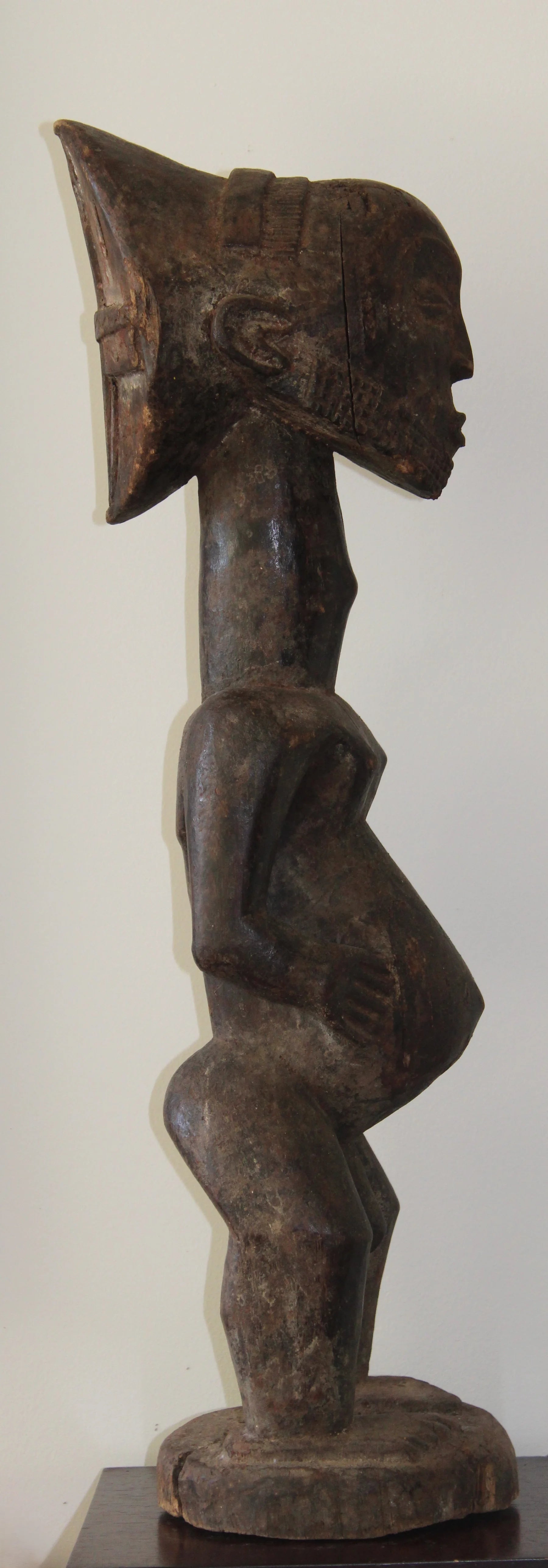 Impresionante estatua Singiti de la etnia Hemba, tallada en madera oscura y de gran delicadeza naturalista.