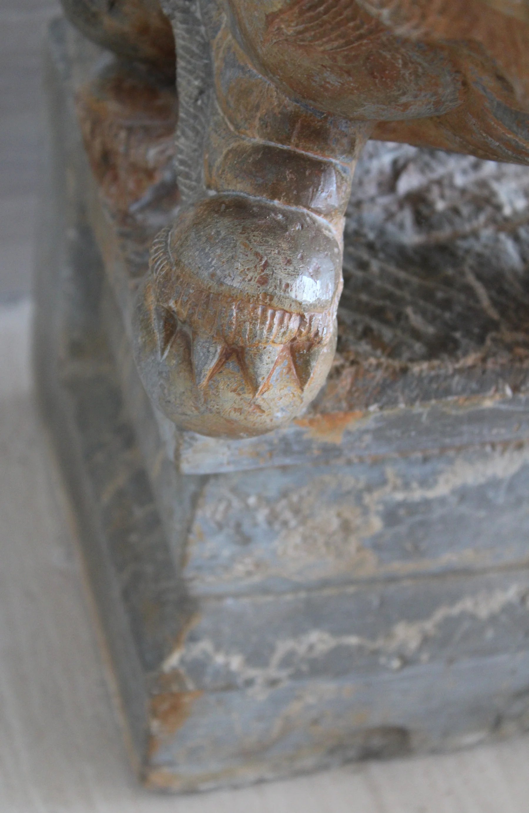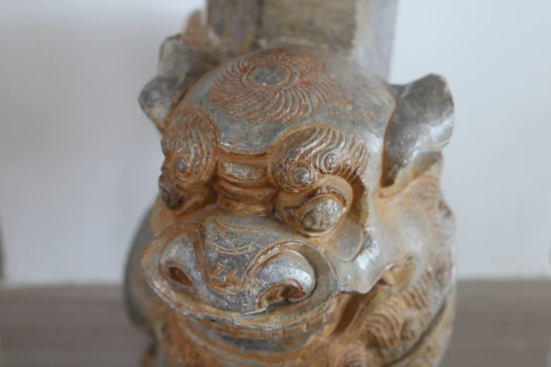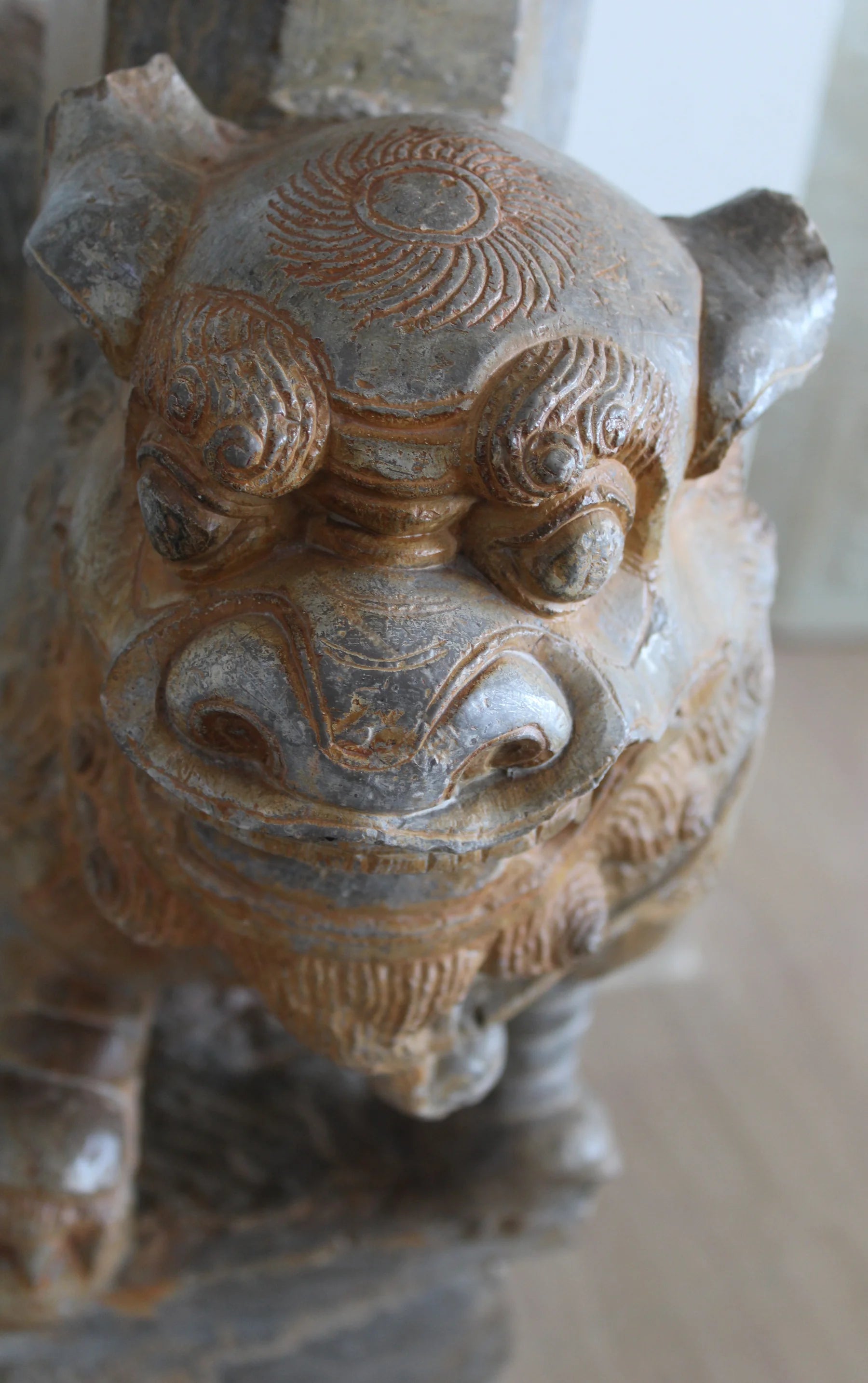 Colocados tradicionalmente en entradas, estos leones protegían hogares y palacios contra malas energías.